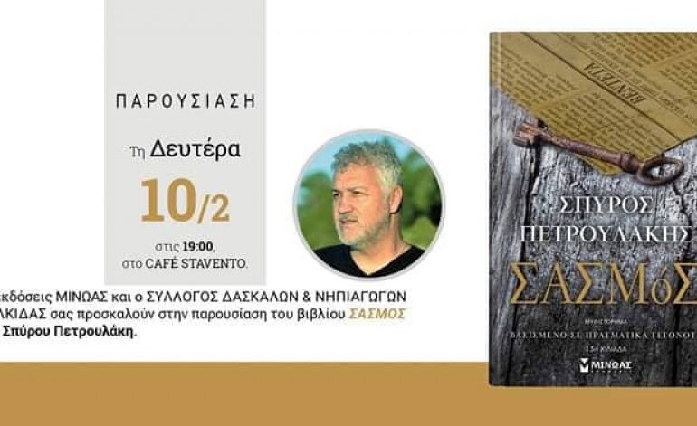 Ο Σύλλογος Δασκάλων και Νηπιαγωγών Χαλκίδας θα παρουσίασει το βιβλίο του ΣΠΥΡΟΥ ΠΕΤΡΟΥΛΑΚΗ,”Σασμός”, τη Δευτέρα 10 Φεβρουαρίου στο ΣΤΑΒΕΝΤΟ καφέ,...