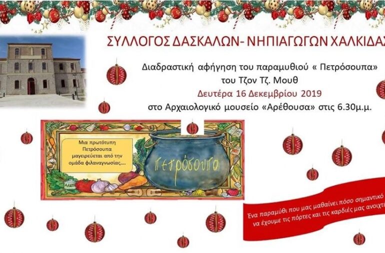 Ο Σύλλογος Δασκάλων και Νηπιαγωγών Χαλκίδας διοργανώνει χριστουγεννιάτικη εκδήλωση για τα παιδιά των εκπαιδευτικών, αλλά και της πόλης, στο Μουσείο ...