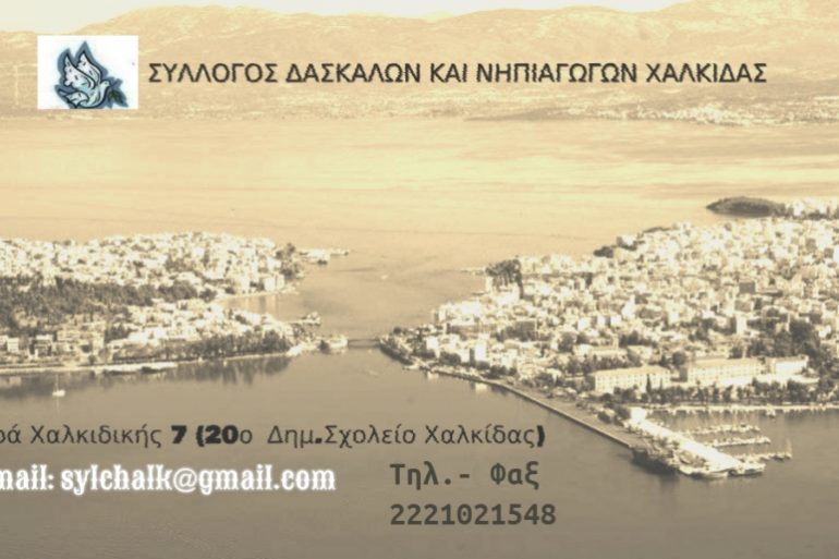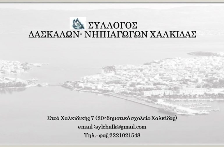 Ο Σύλλογος Δασκάλων και Νηπιαγωγών Χαλκίδας την Πέμπτη 05/09/2019 συναντήθηκε με τον Διευθυντή Πρωτοβάθμιας του Νομού ώστε να ενημερωθεί για...