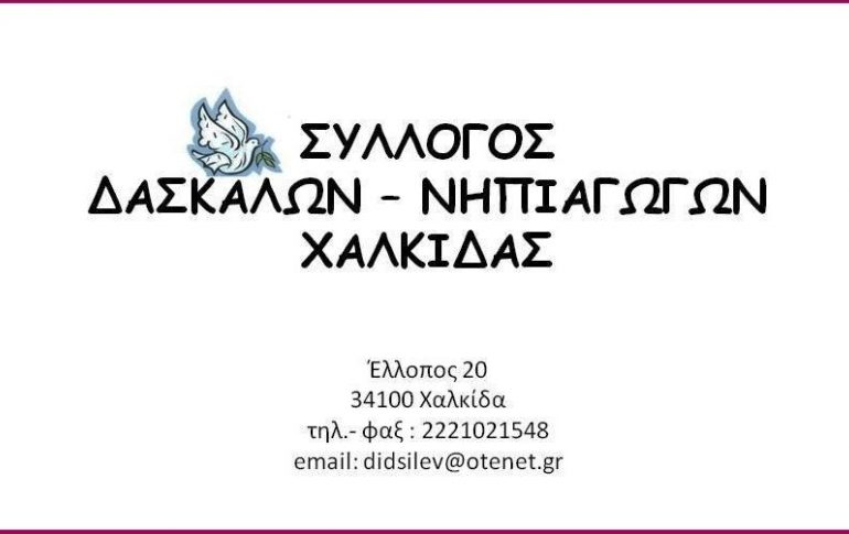 Ο Σύλλογος Δασκάλων Νηπιαγωγών Χαλκίδας, με αφορμή την ανακοίνωσή του Υπουργείου Παιδείας, σύμφωνα με την οποία, δρομολογούνται οι διαδικασίες διορισμού...